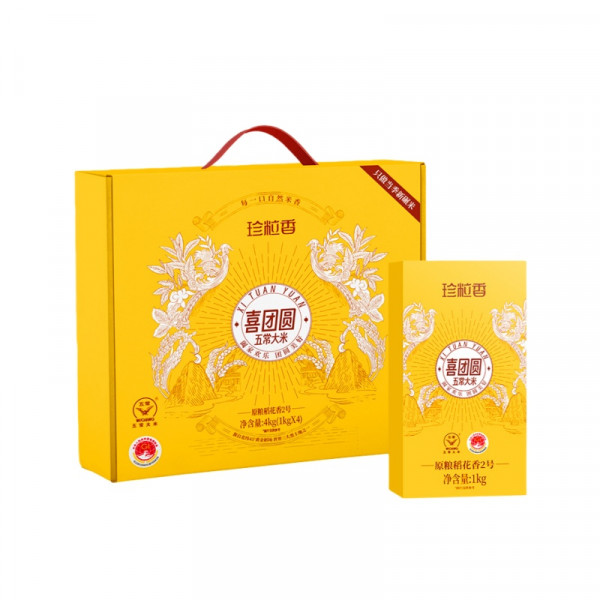 (世星阳光)+珍粒香 喜团圆五常大米礼盒4kg 软糯香甜 优质鲜稻现磨 优质产区