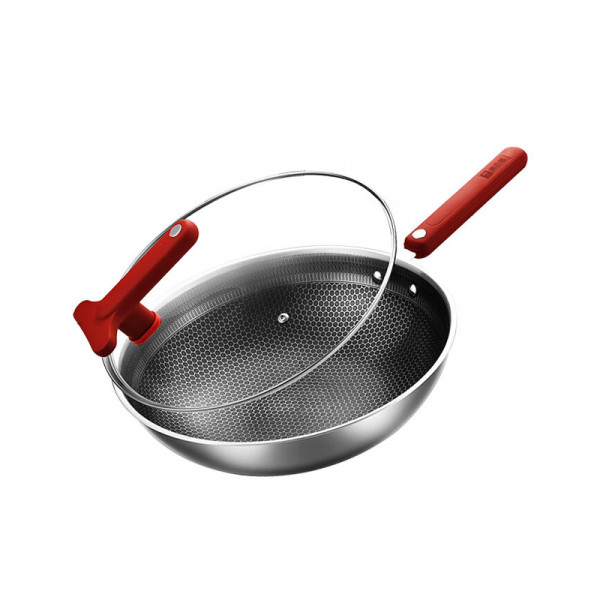 (巨邦佑)BJ+康巴赫 经典红304蜂窝炒锅 32cm LPB-C32H 不锈钢炒菜锅不粘锅电磁炉燃气灶通用