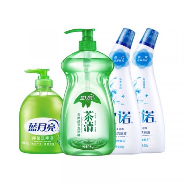 (世星阳光) 蓝月亮厨卫组合 【洗涤精洗涤灵1kg+洗手液500g+洁厕液500g*2 】茶清洗洁精(绿茶清香)洗洁精食品可用