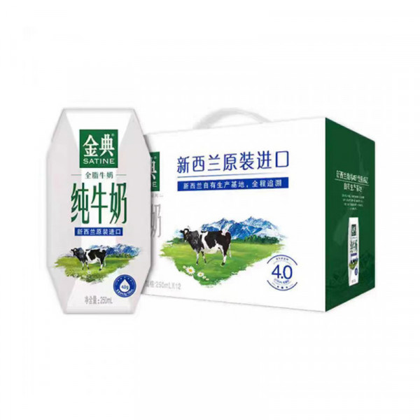 (中百)伊利金典新西兰纯牛奶250ml*12 原产地进口原生乳蛋白