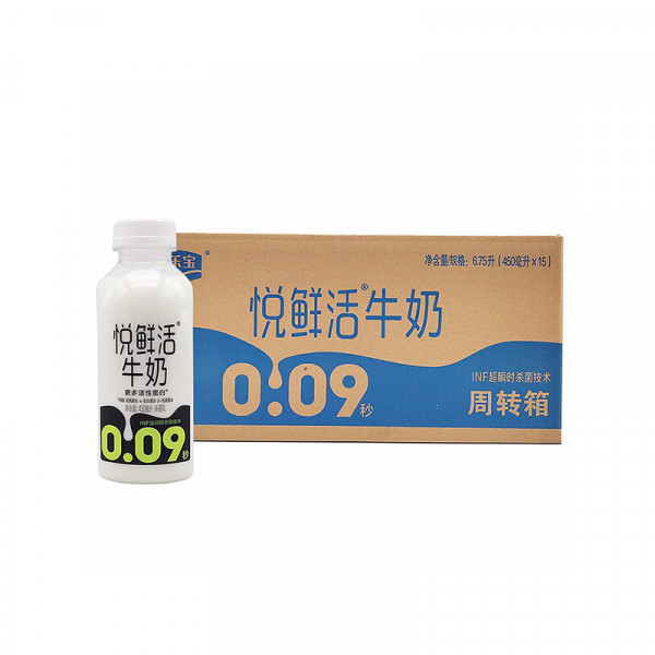 (巨邦佑)T+ (yp)君乐宝悦鲜活牛奶瓶装450ml*15瓶 整箱 低温保鲜鲜牛奶