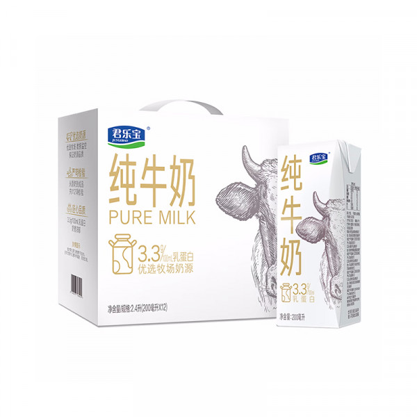 (巨邦佑)T+ (yp)君乐宝优选牧场纯牛奶200ml*12 优质奶源 营养早餐