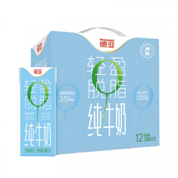 (世星阳光)+德亚 轻盈脱脂牛奶(200mlx12)礼盒 德国进口脱脂高钙纯牛奶 0脂肪