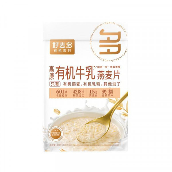 (巨邦佑)T+ (yp)好麦多高蛋白有机牛乳麦片300g*2 农科院推荐宝宝有机纯燕麦片早餐冲泡即食独立小包装儿童营养代餐 新疆奶源