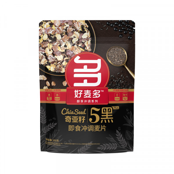 (巨邦佑)T+ (yp)好麦多奇亚籽五黑麦片350g*2袋装 膳食纤维谷物奇亚籽5黑即食燕麦片