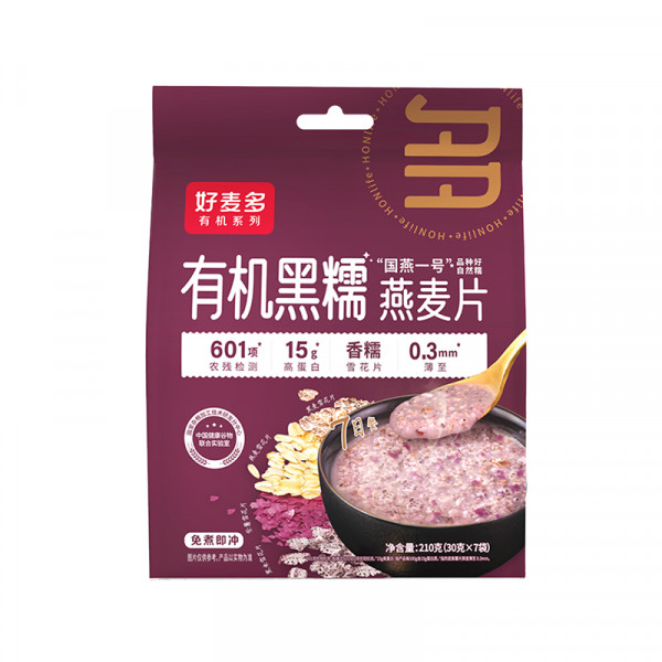 (巨邦佑)T+ (yp)好麦多农科院推荐有机即食八珍燕麦片高纤维无0添加蔗糖冲饮代早餐营养 有机黑糯燕麦片 210g*3 (富含花青素)