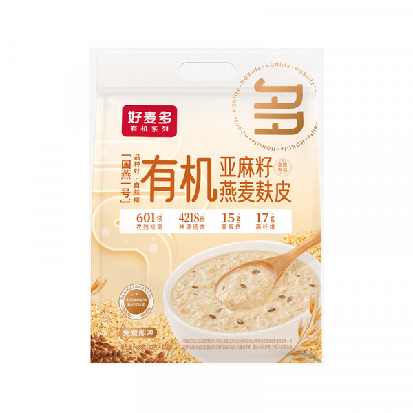 (巨邦佑)T+ (yp)好麦多有机亚麻籽纯燕麦麸皮片即食高膳食纤维免煮代早餐营养无0添蔗糖 双有机麦麸420g*2 低升糖 更健康