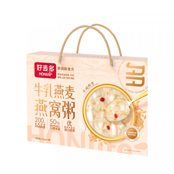 (巨邦佑)T+ (yp)好麦多八珍牛乳燕窝礼盒 糯米红豆黑米营养早餐送礼佳品 牛乳燕麦燕窝粥礼盒252g*6碗