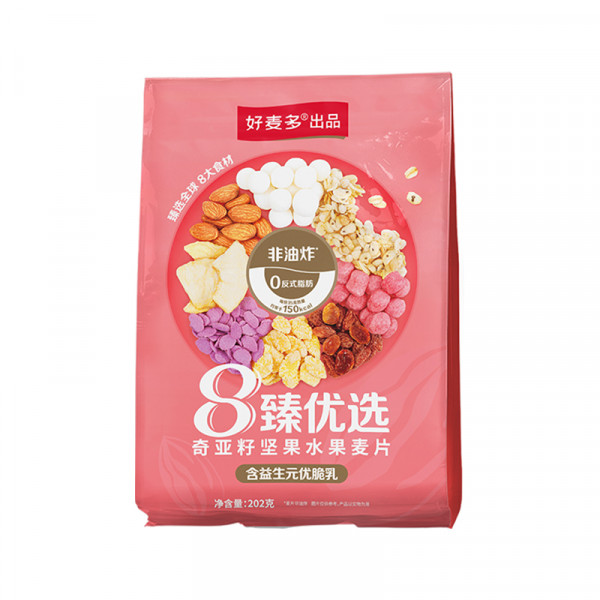 (巨邦佑)T+ (yp)好麦多8臻优选奇亚籽坚果水果麦片202g 2袋装
