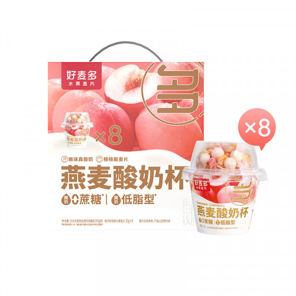 (巨邦佑)T+ (yp)好麦多燕麦搅拌酸奶碗杯懒人早餐 下午茶 开盖即食营养代餐咀嚼零食 0蔗糖桃桃酸奶杯(145g+20g)*8杯