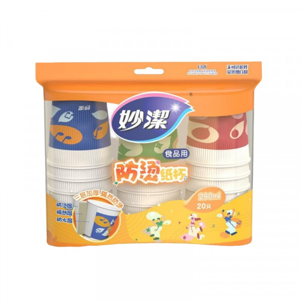 (世星阳光)妙洁 一次性纸杯290ML 20只装 硬挺不易变形 碰响欢乐 三层杯身 隔热防烫 不易软榻变形三层杯身