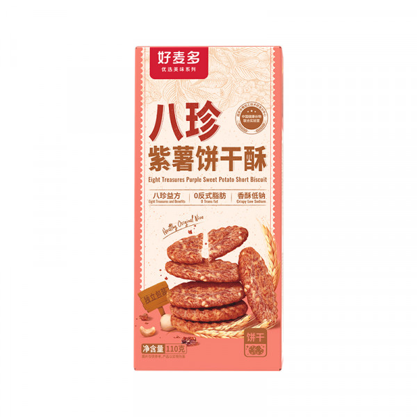 (巨邦佑)T+ (yp)好麦多黑松露火腿奇亚籽黑麦苏打饼干八珍紫薯小包装办公室休闲零食 八珍紫薯饼干酥 110g*3盒