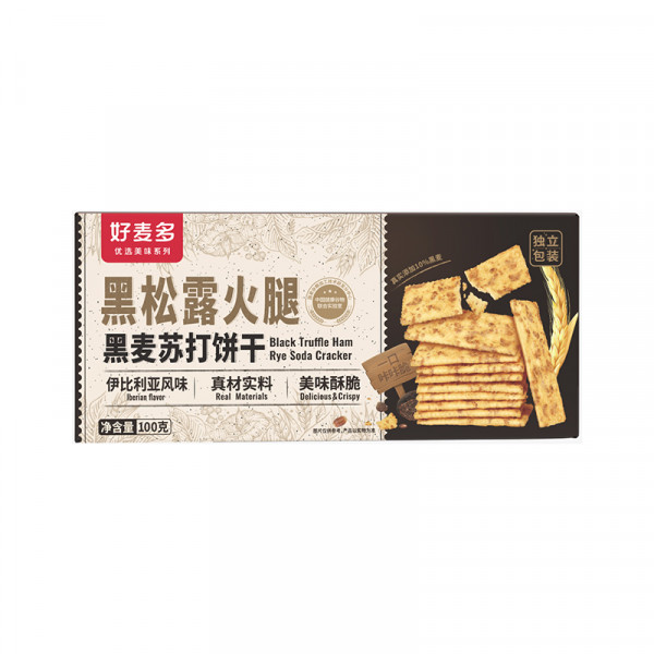 (巨邦佑)T+ (yp)好麦多黑松露火腿黑麦苏打饼干 100g*4盒 梳打饼办公室休闲下午茶
