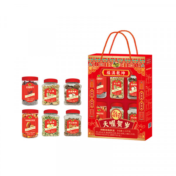 (巨邦佑)BJ+天喔 红标礼盒1.13kg 开心果夏威夷果开口杏豌豆兰花豆葡萄干坚果组合