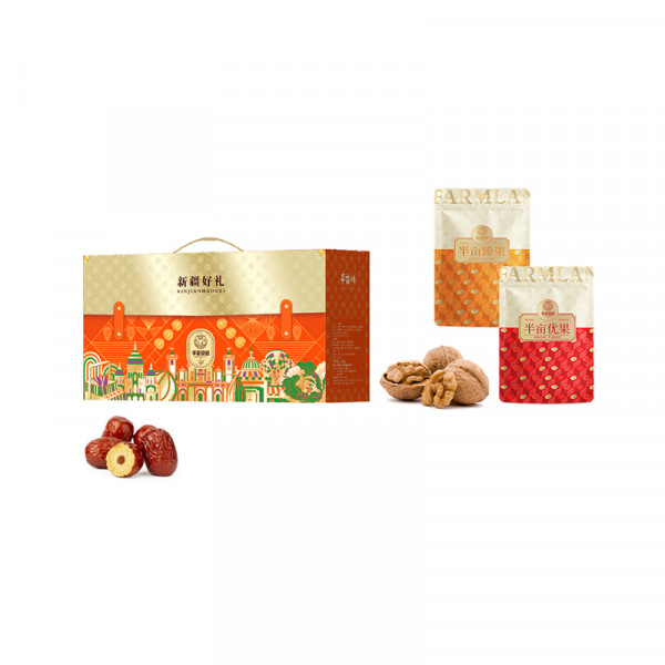 (巨邦佑)R+半亩川新疆好礼1200g礼盒 红香妃绿香妃乌梅杏干坚果礼盒
