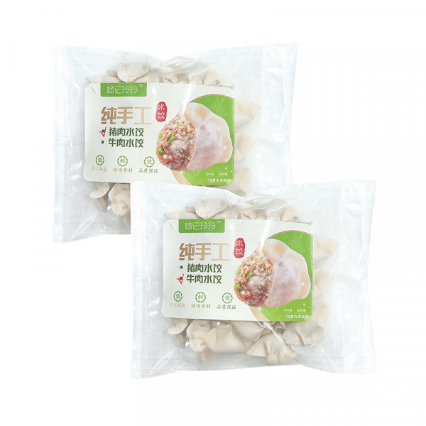 (世星阳光) 杨记玲玲 手工水饺 猪肉牛肉混装 1+1共2袋1000g 简装 纯手工水饺 食材新鲜 无添加