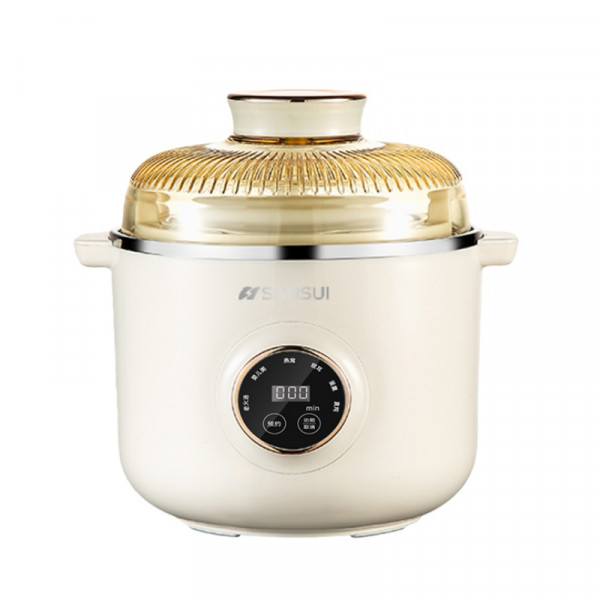 (世星阳光)SANSUI山水 多功能电炖锅1.2L SDZ-19S 米色 隔水柔炖营养充分保留 恒温泡发燕窝朵朵饱满 微电脑智能菜单一键触控炖煮免看管