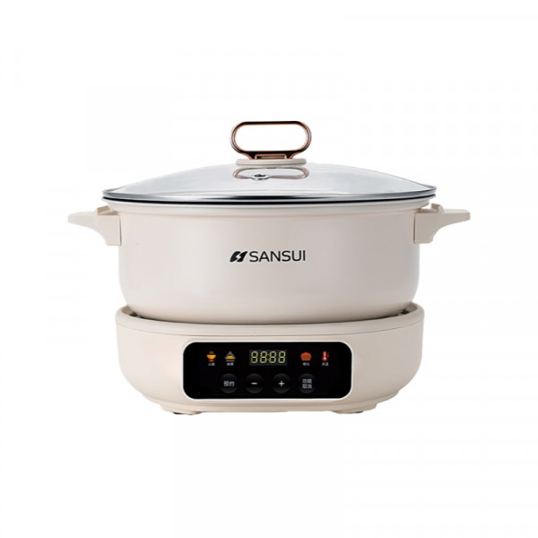(世星阳光)SANSUI山水 多功能分体电火锅5L (电脑款)SHG-5342 米色 分体电火锅料理好帮手 快速沸腾 超大发热盘 加热更均匀