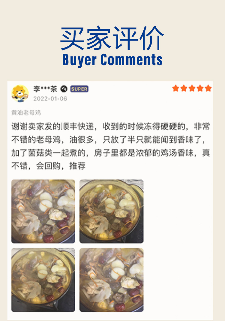 商品名称:(世星阳光) 蛋鲜森500天黄油老母鸡 1350g±100g只 (2只装) 顺丰源头直发 黄油老母鸡