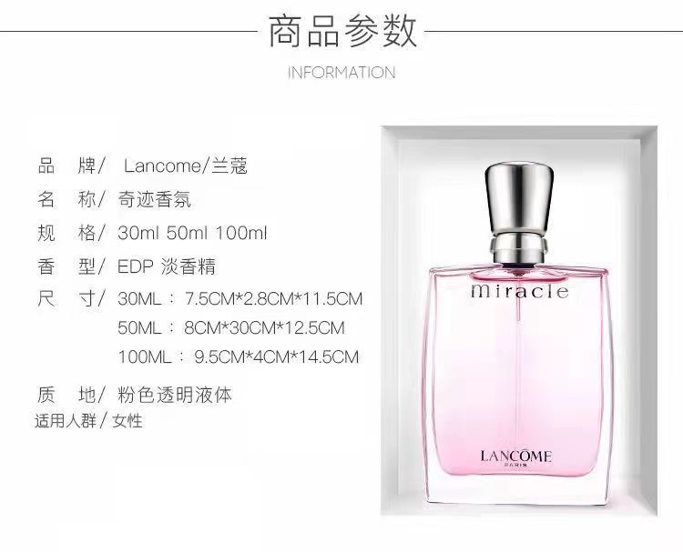 商品名称:(超运·禾贸)兰蔻Lancome 奇迹香氛30ml瓶(FH) 清新花香持久留香 礼盒生日礼物女神节礼物送女友