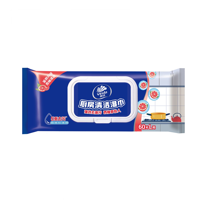 (中合誉品)维达厨房去油清洁湿巾60片西柚味 厨房用强效去油污 加大加厚