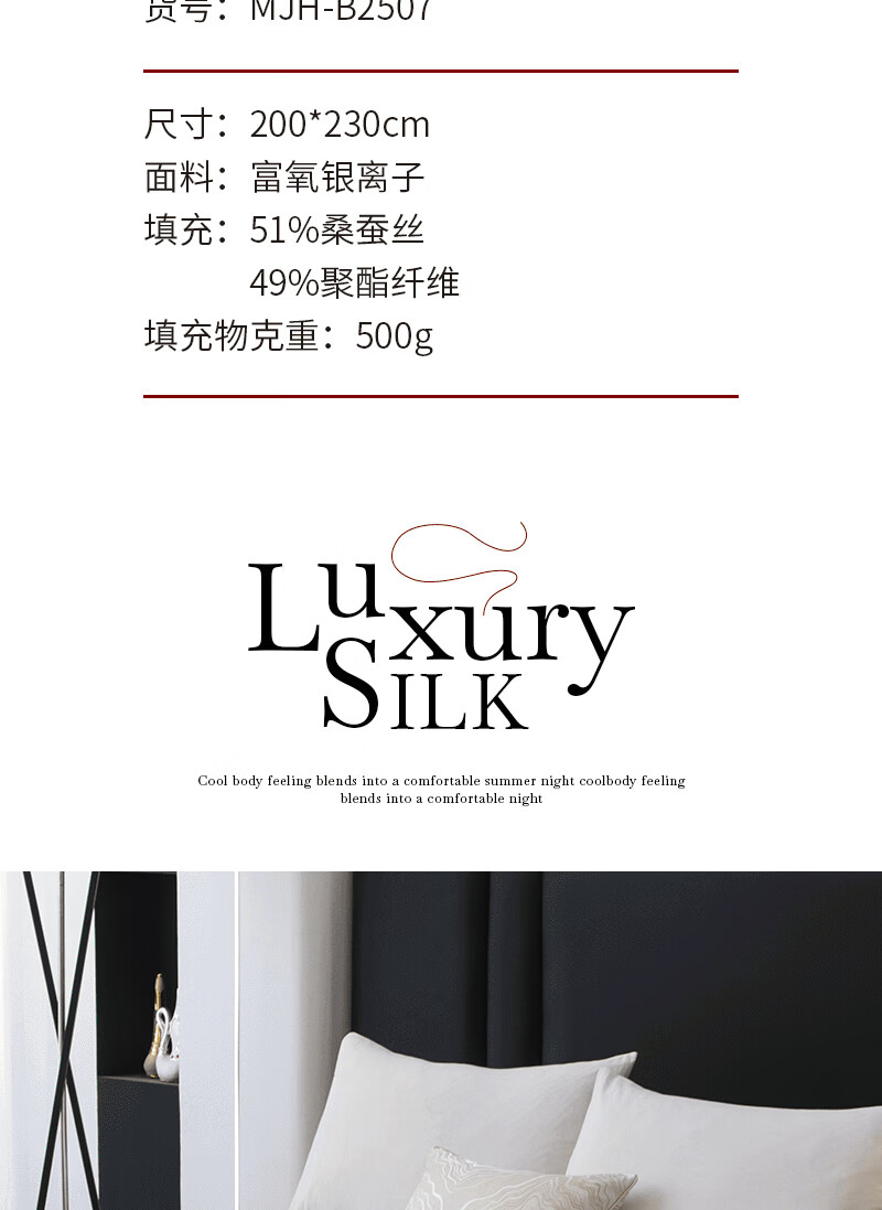 商品名称:(巨邦佑)BJ+无印良品HOME银离子臻享蚕丝被(米色) 200*230cm 填充:51%桑蚕丝49%聚酯纤维 甄选桑蚕丝
