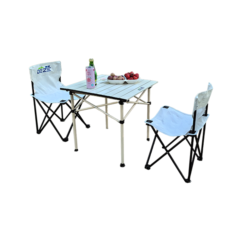 (康恩)德则户外乐享折叠桌椅三件套露营野餐装备米色白色DEZ-ZDZY11