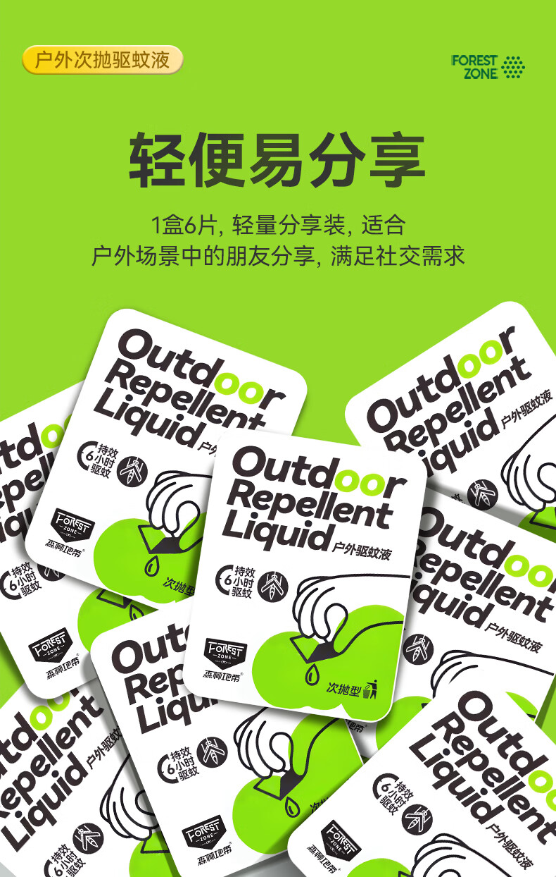商品名称:(超运·禾贸)森林地带掰易掰驱蚊液2.5g*6(10%驱蚊酯无香)【SLDD013】*3盒 避蚊胺驱蚊喷雾便携驱蚊贴