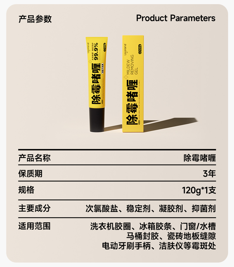 商品名称:(汇景缘)乐乐桉除霉啫喱120g支*3 家用厨房冰箱洗衣机胶圈抑菌去霉菌霉斑清洁剂