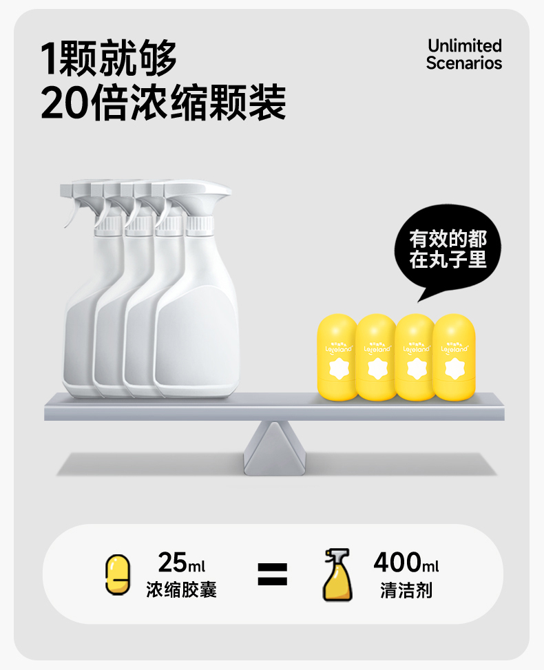 (汇景缘)乐乐桉多功能清洁剂(400ml空喷瓶*1 蜜桃味胶囊25ml*4)送擦擦乐*1每日泡泡丸家用厨房浴室墙面泡沫强力多效去污