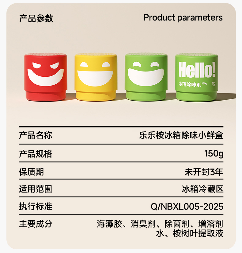 商品名称:(汇景缘)乐乐桉冰箱除味剂150g个*3 去异味神器家用清洁净化抑菌吸味持久保鲜除味盒除臭剂