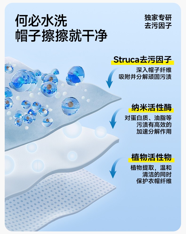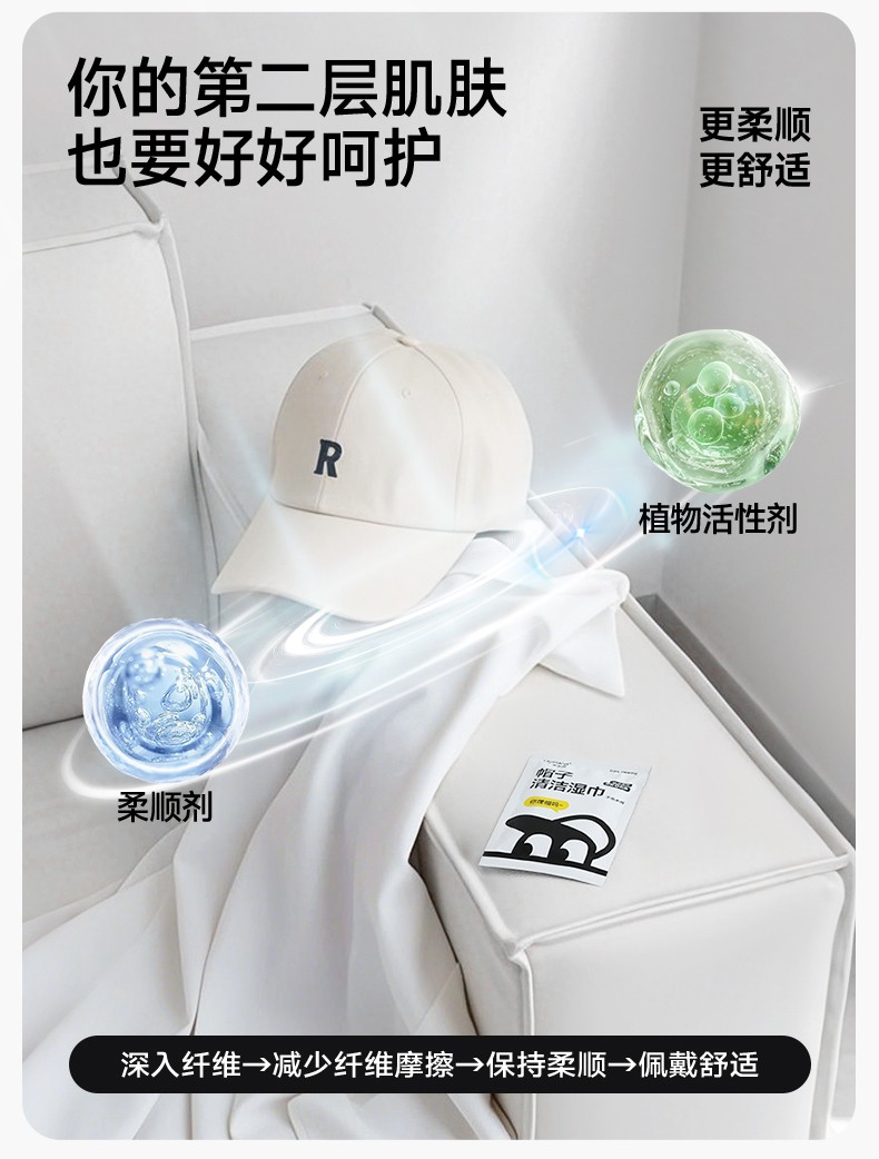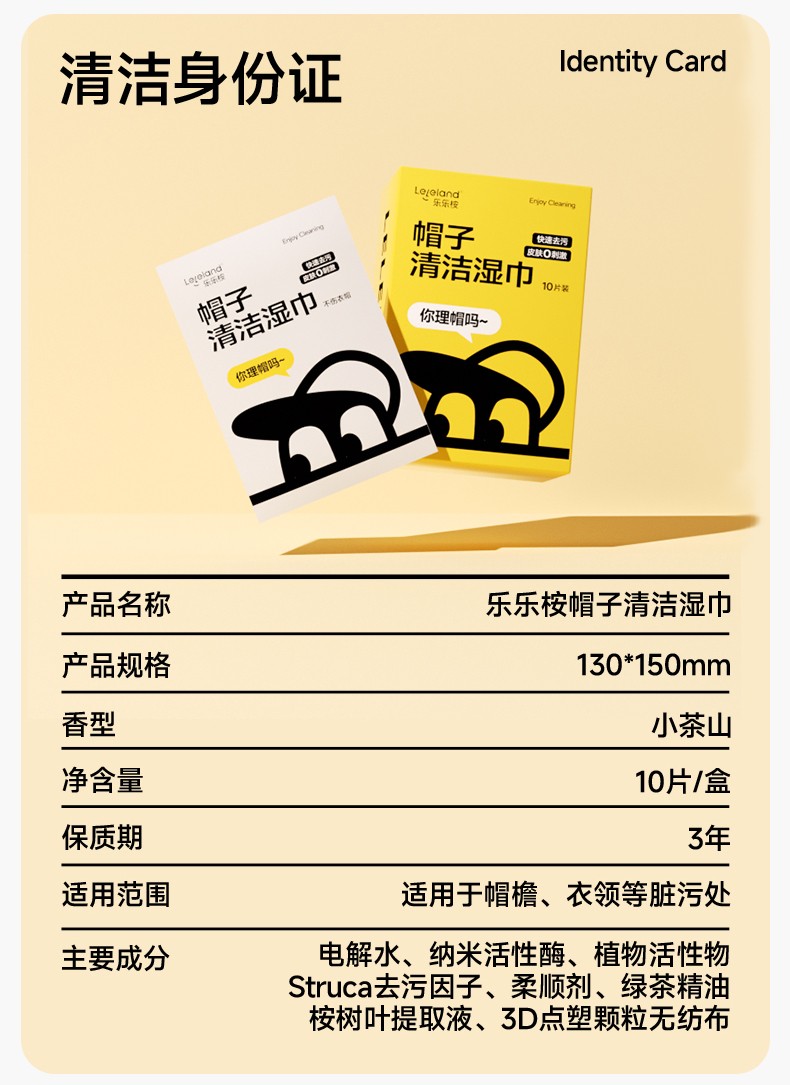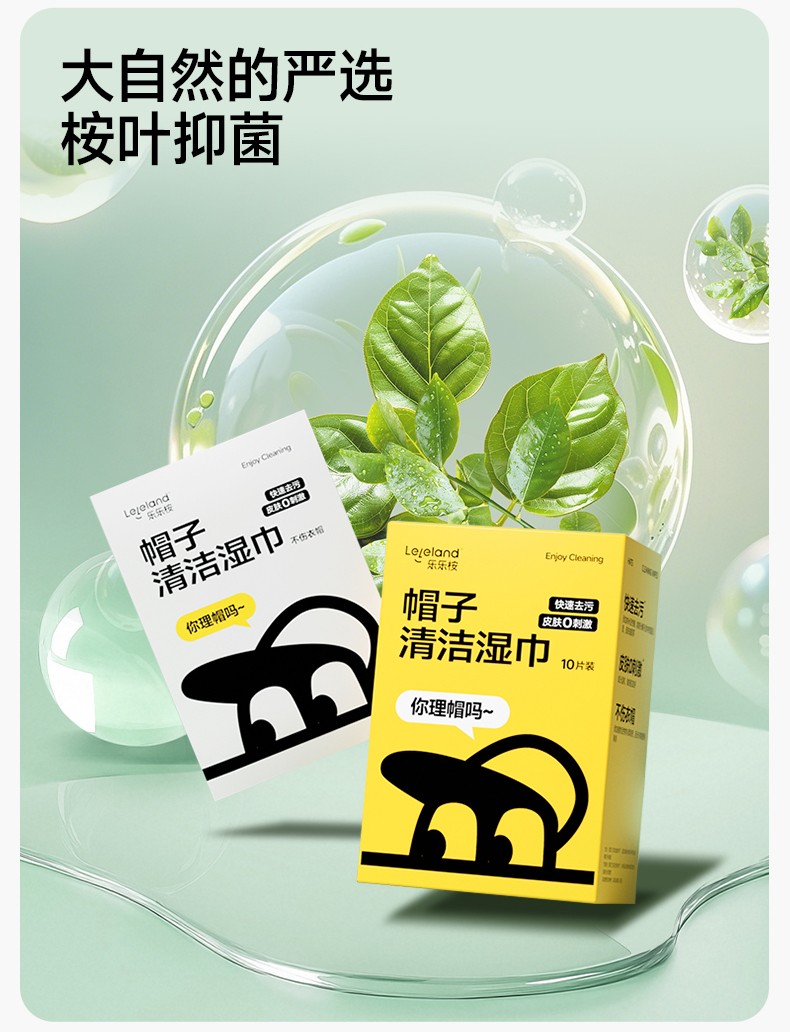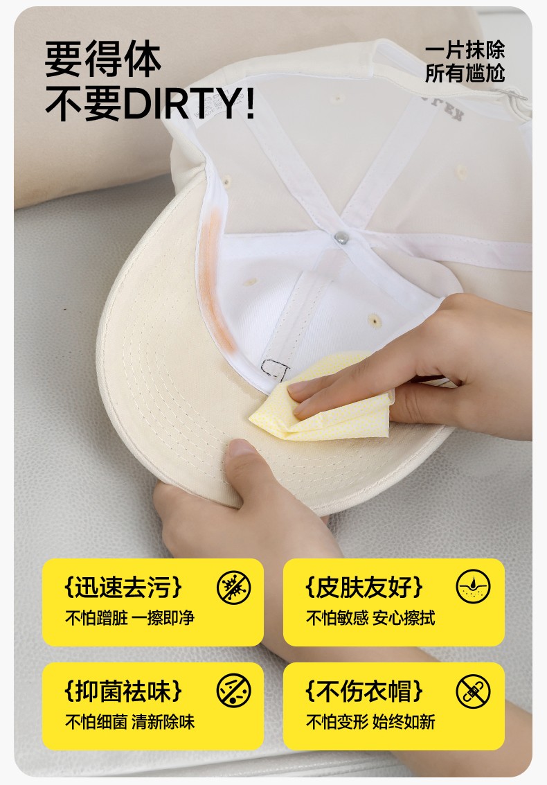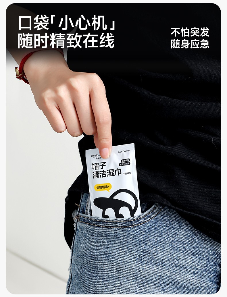 商品名称:(汇景缘)乐乐桉帽子清洁湿巾10片盒*3帽子去污免水洗衣物去汗渍鸭舌帽棒球帽防晒帽干洗清洁湿巾