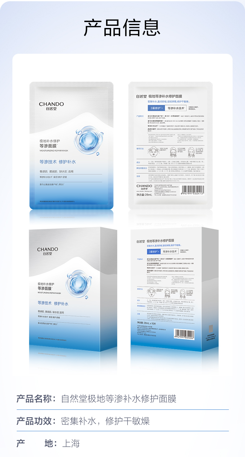 商品名称:(世星阳光)自然堂极地等渗补水修护面膜28ml×5片 舒缓温和水润强韧