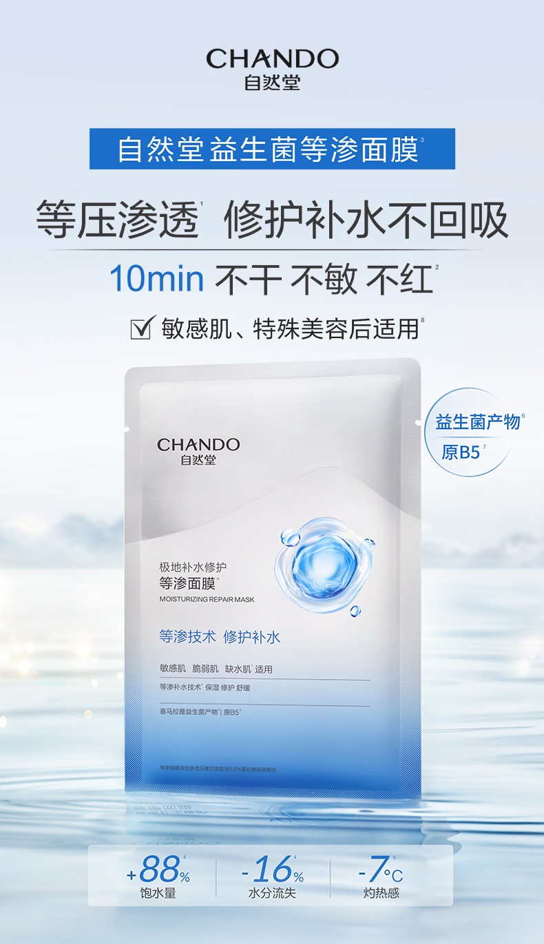 (世星阳光)自然堂极地等渗补水修护面膜28ml×5片 舒缓温和水润强韧