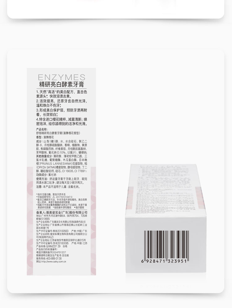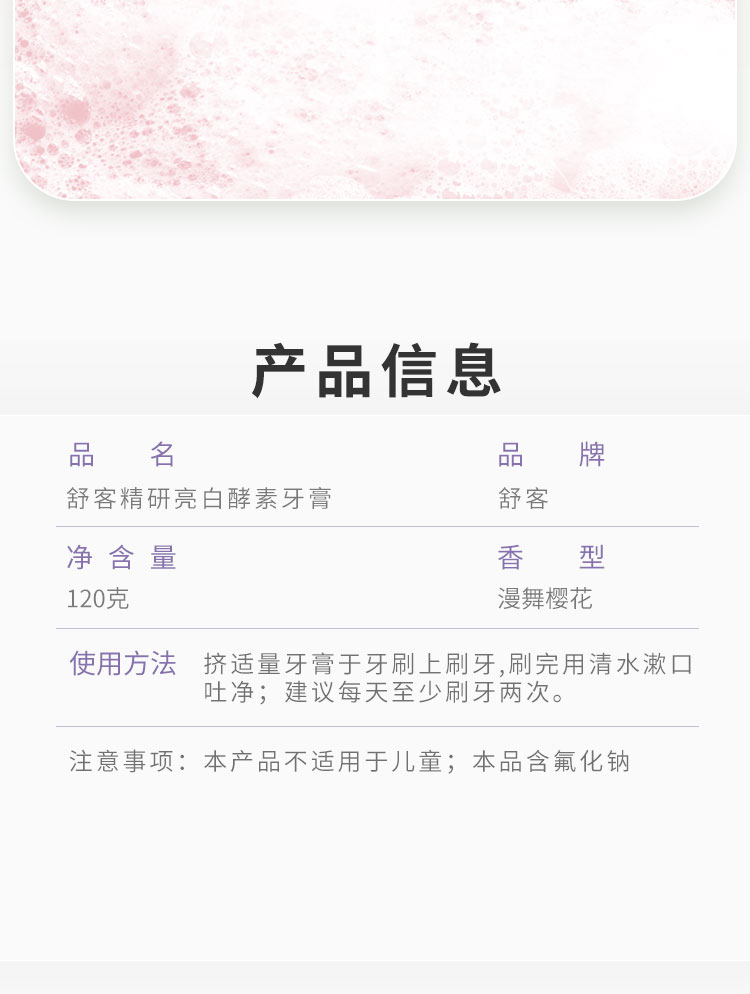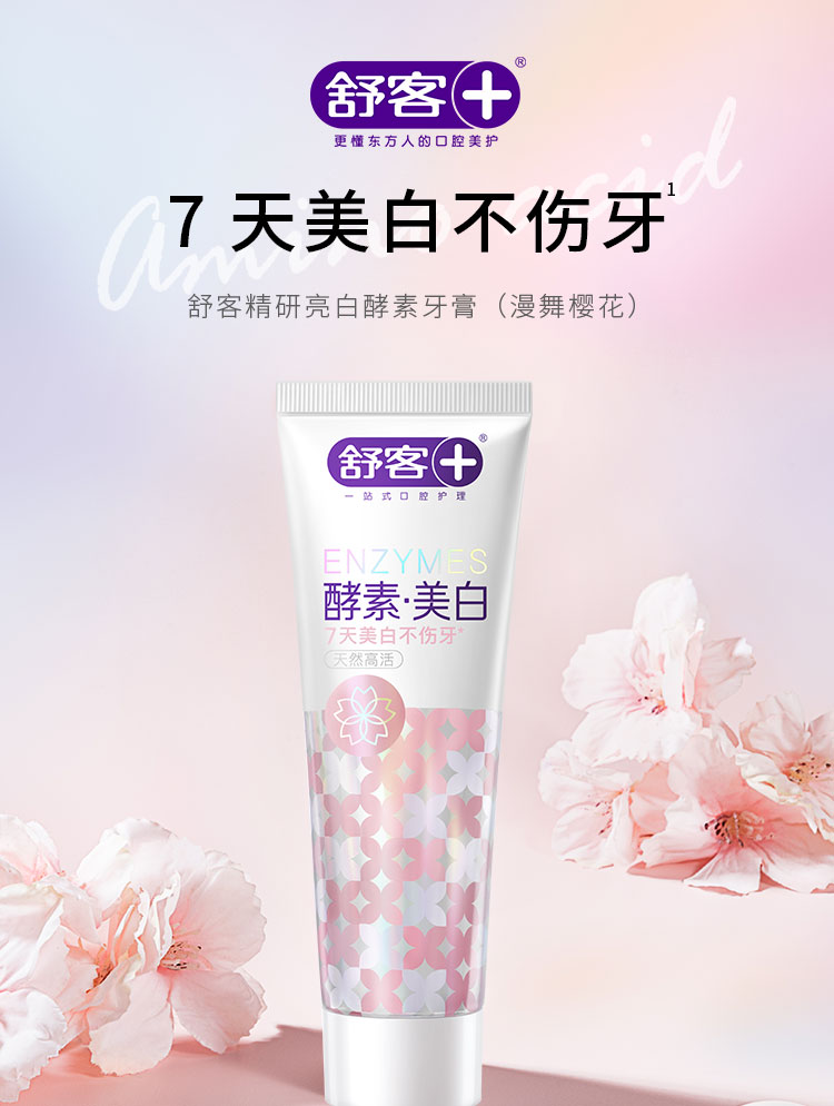商品名称:(世星阳光)舒客法国天然酵素牙膏 美白牙齿去黄去渍 樱花香型120g*3