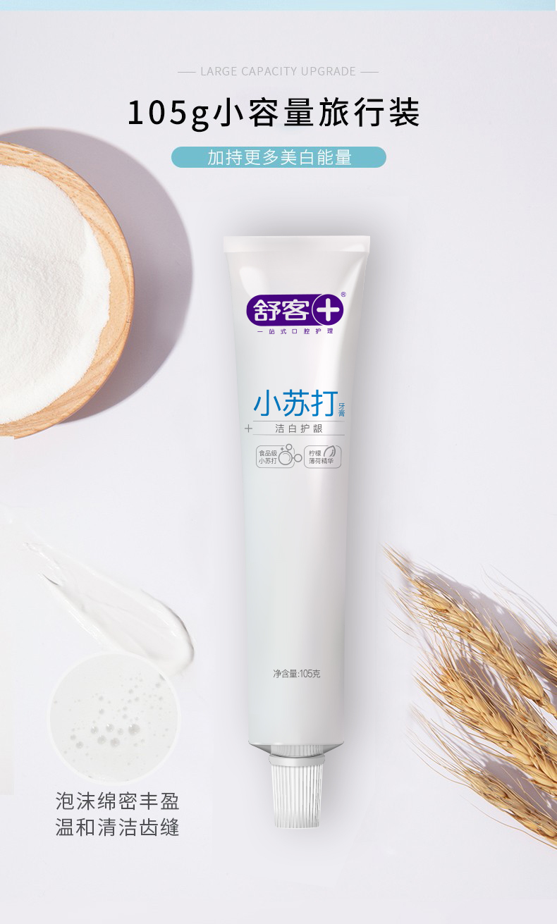 商品名称:(世星阳光)舒客防蛀清新 沁爽炫白 沁爽清新牙膏 专业护龈洁齿强烈 小苏打牙膏105g*3