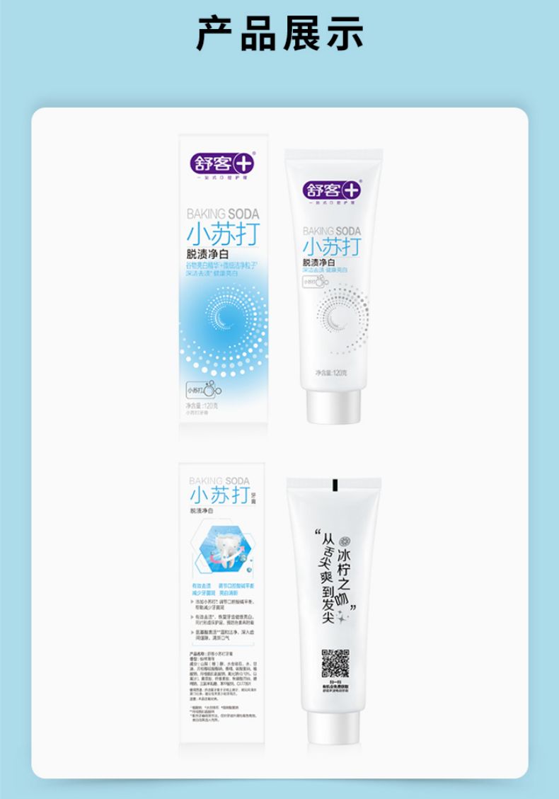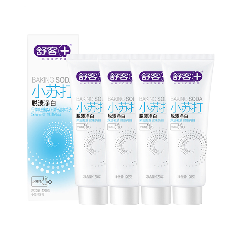 商品名称:(世星阳光)舒客防蛀清新 沁爽炫白 沁爽清新牙膏 专业护龈洁齿强烈 脱渍净白小苏打牙膏160g*4