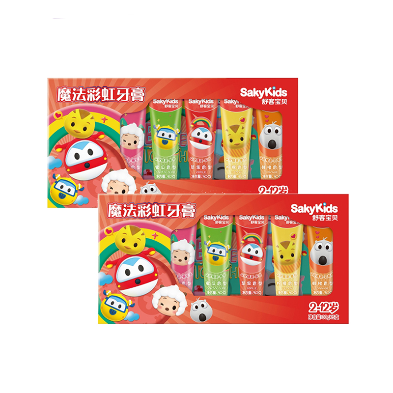(世星阳光)舒客魔法彩虹牙膏儿童牙膏2-12岁换(混合口味*5支+趣味涂色卡) 两盒