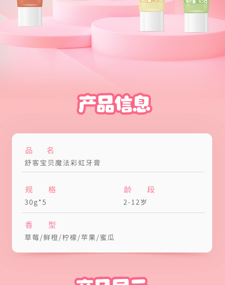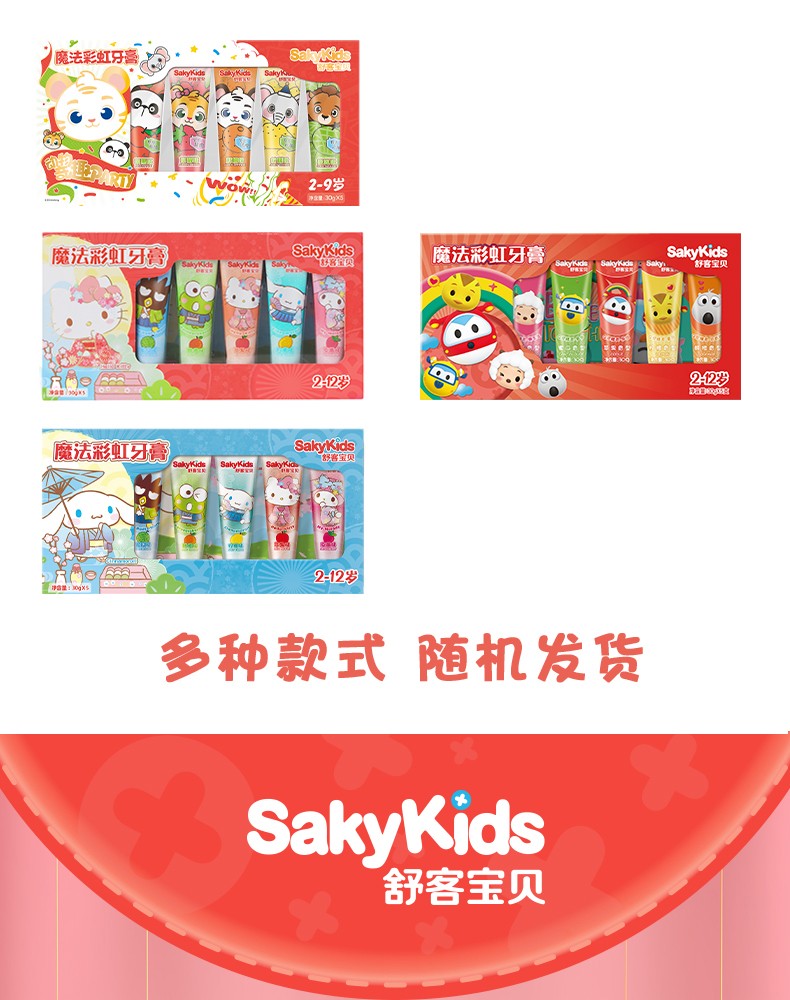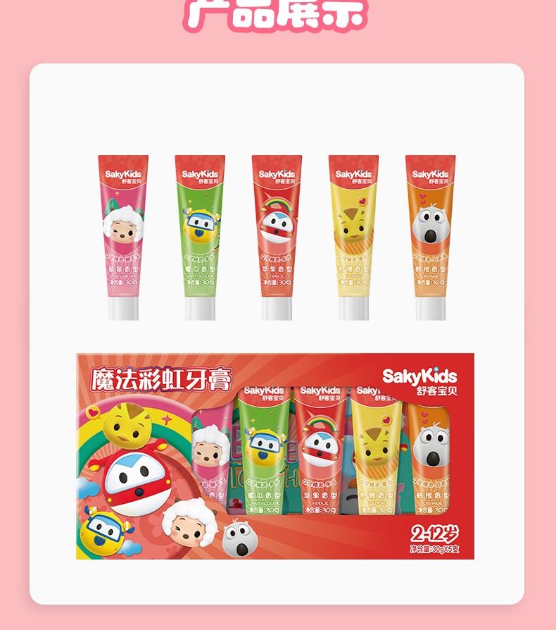 商品名称:(世星阳光)舒客魔法彩虹牙膏儿童牙膏2-12岁换(混合口味*5支+趣味涂色卡) 两盒
