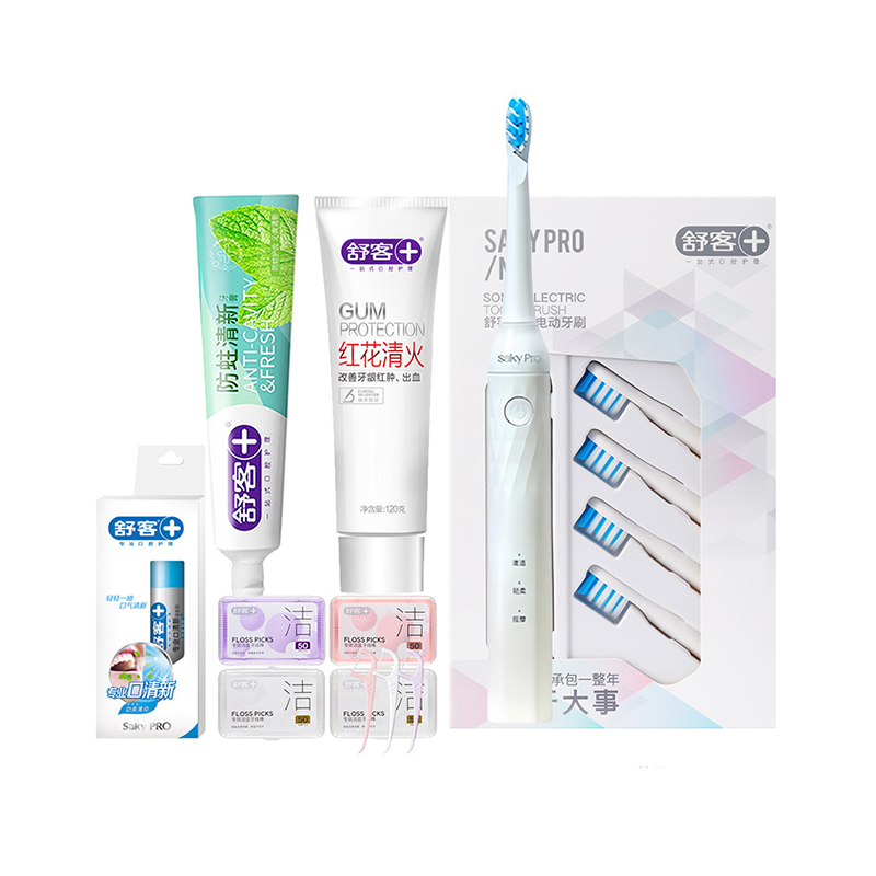 (世星阳光)舒客臻选功能口腔套装 ZHS-NT32 舒客小芯机—声波电动牙刷 N1*1(1主机4刷头) 舒客红花清火牙膏120克*1 舒客沁爽防蛀清新牙膏145g *1 舒客商务型口腔清新喷雾18ml*1 舒客洁齿牙线棒 50支*1(颜