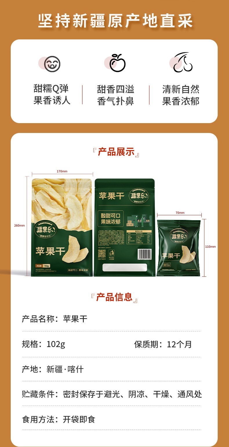商品名称:(世星阳光) 疆果乐苹果干102g 果脯原味零食蜜饯果干休闲食品新疆冰糖心红富士果肉