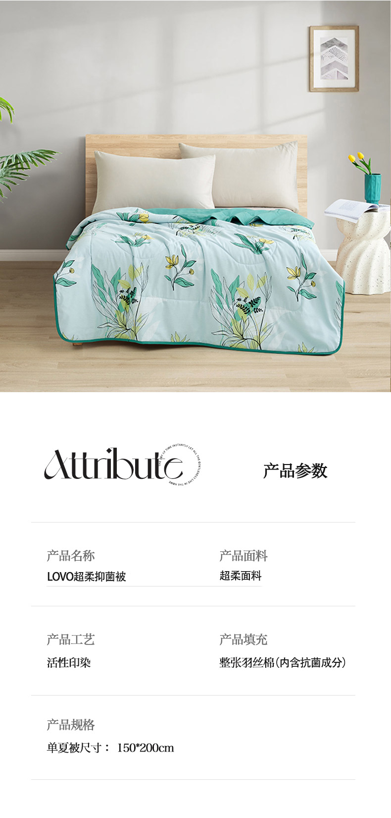 商品名称:(世星阳光)罗莱生活LOVO—超柔抑菌夏被150cm*200cm 100%聚酯钎维 可机洗水洗 高效抗菌柔软面料