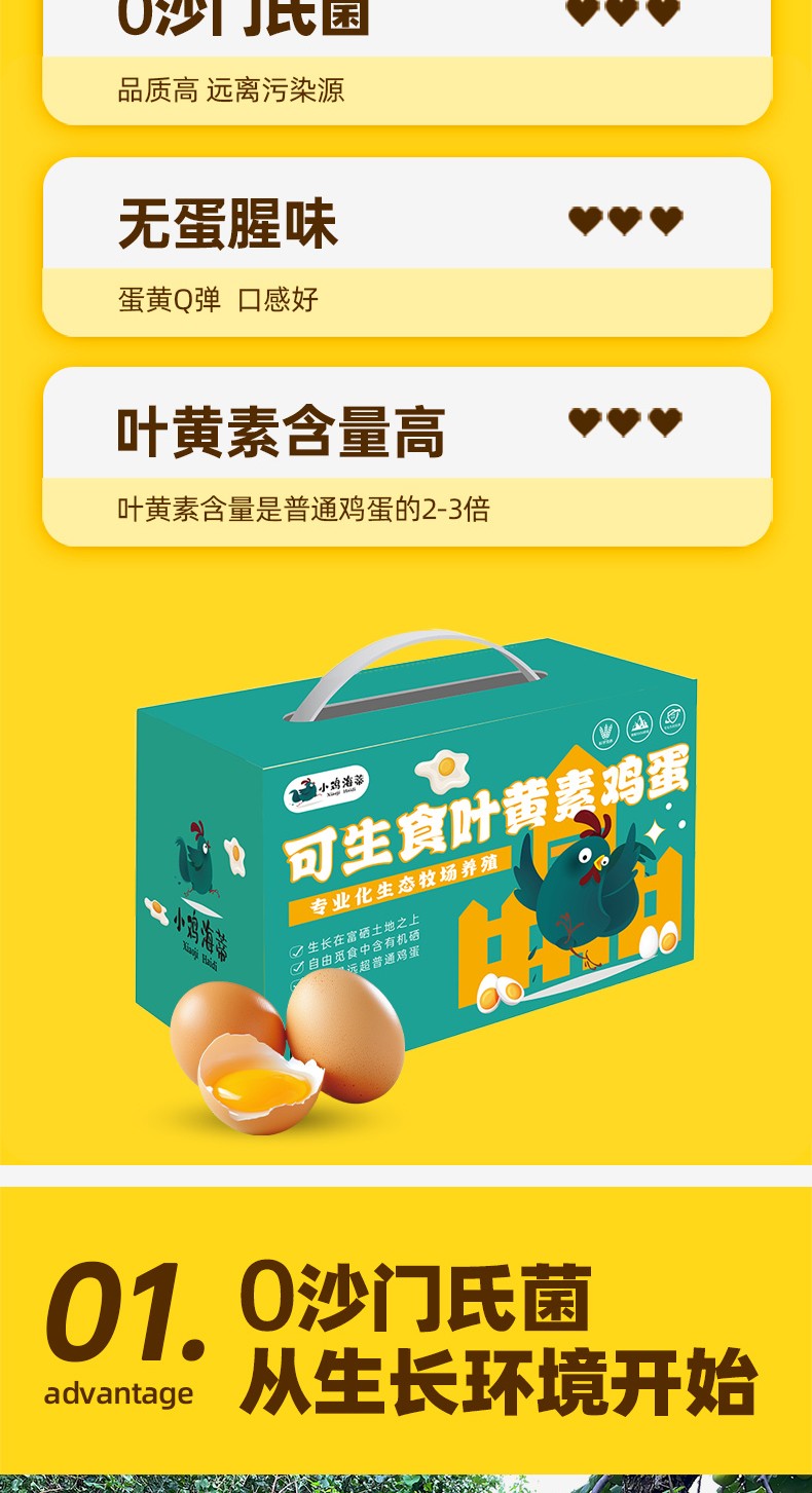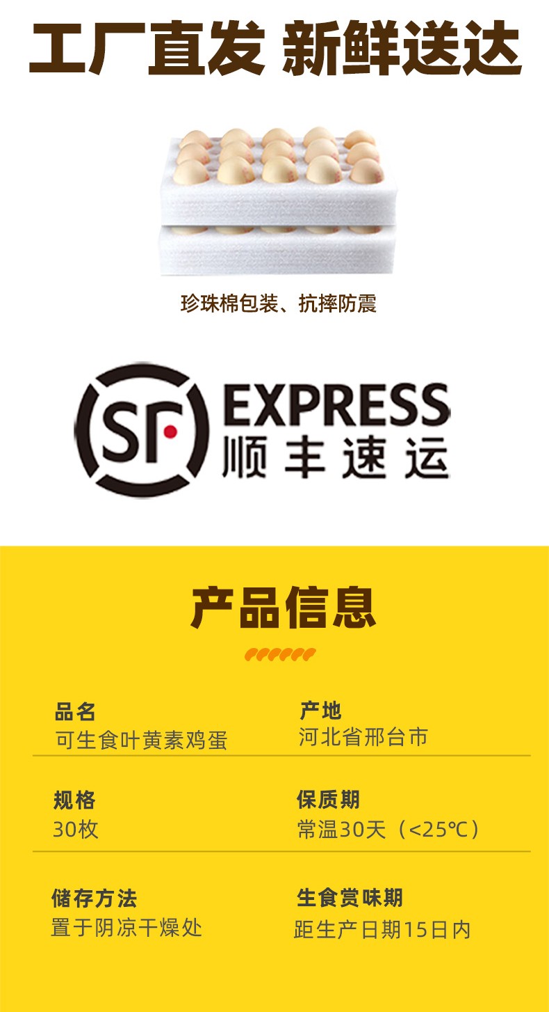 商品名称:(巨邦佑)R+小鸡海蒂叶黄素可生食鸡蛋30枚盒1500g 太行山非笼养不含沙门氏菌可生食标准新鲜鸡蛋礼盒装送礼