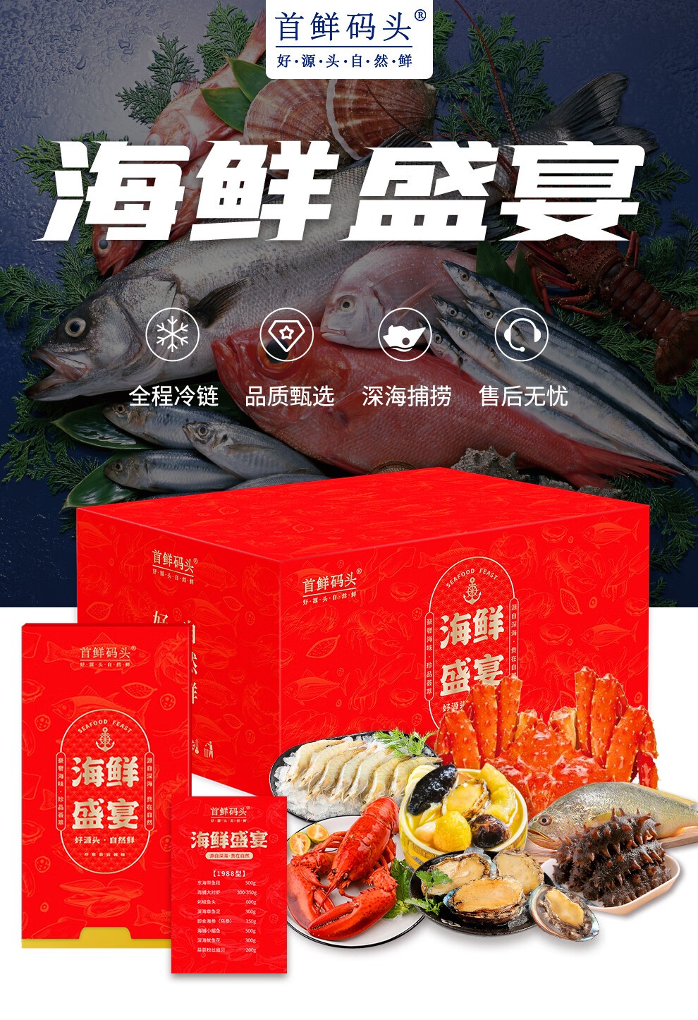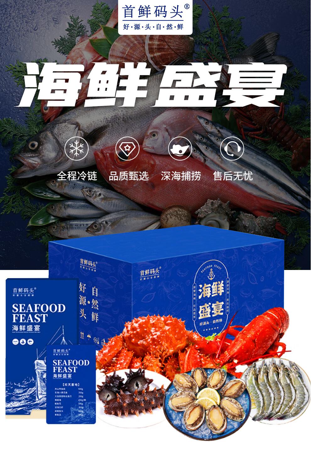 (巨邦佑)BJ+首鲜码头 环球系列海鲜礼盒大礼包 国产海鲜鲍鱼白虾深海大乌参扇贝鳕鱼青花鱼小黄鱼