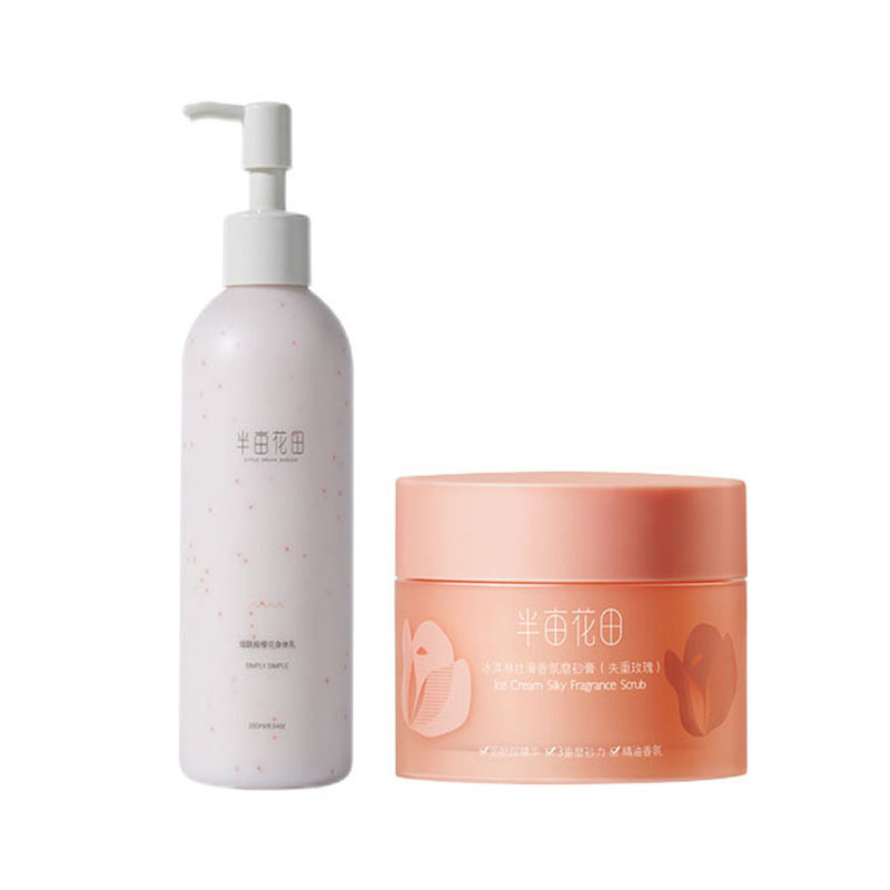 商品名称:(世星阳光)+半亩花田5%烟酰胺樱花身体乳250ml +冰淇淋丝滑香氛磨砂膏(失重玫瑰)250g 5大保湿因子 全身肌肤澎澎保湿