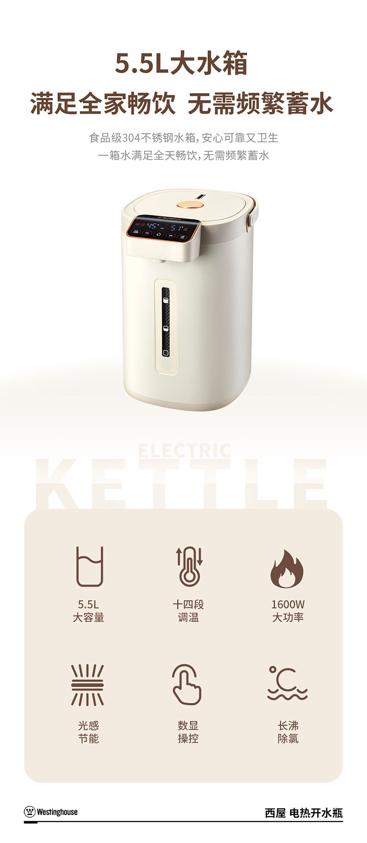 (世星阳光)+WY西屋 电热开水瓶 5.5L WSP162 大水箱 满足全家畅饮 无需频繁蓄水