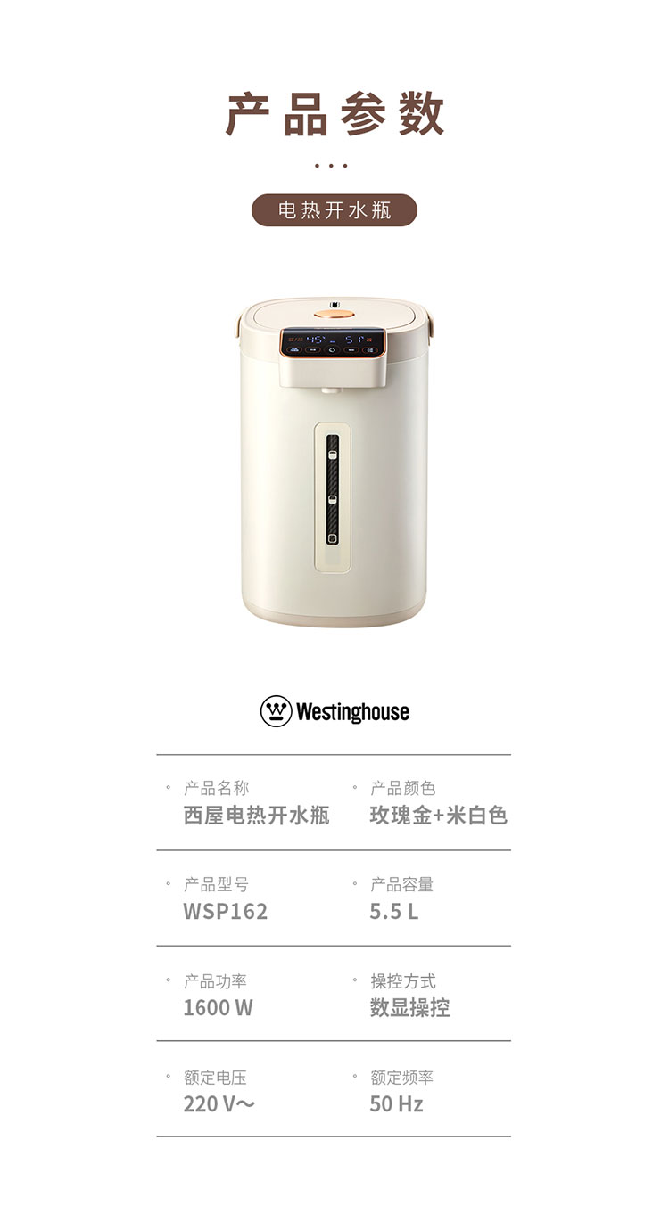 商品名称:(世星阳光)+WY西屋 电热开水瓶 5.5L WSP162 大水箱 满足全家畅饮 无需频繁蓄水