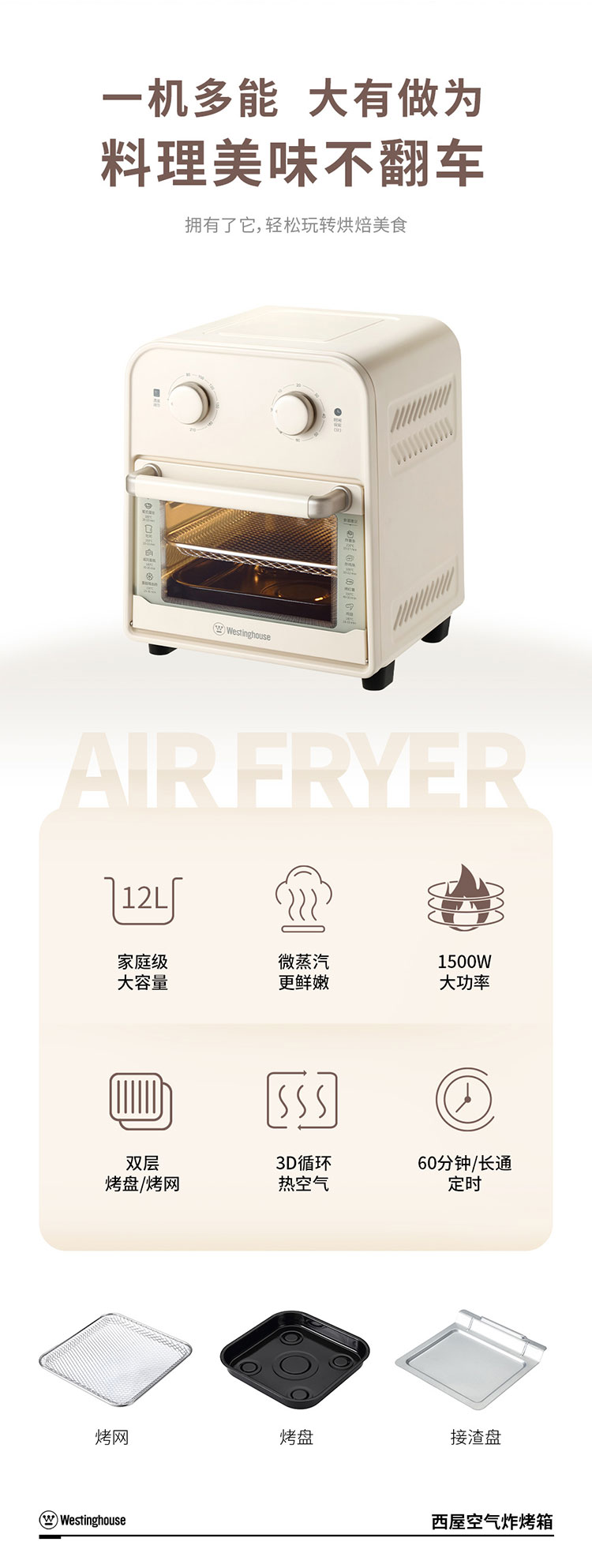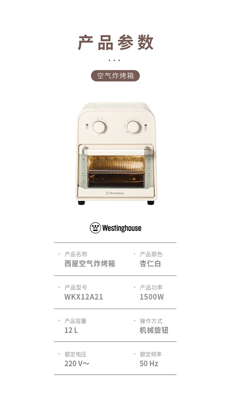 商品名称:(世星阳光)+WY西屋 空气炸烤箱 21L WKX12A21 大尺寸可视窗 生熟焦脆一眼掌控 微蒸汽更鲜嫩