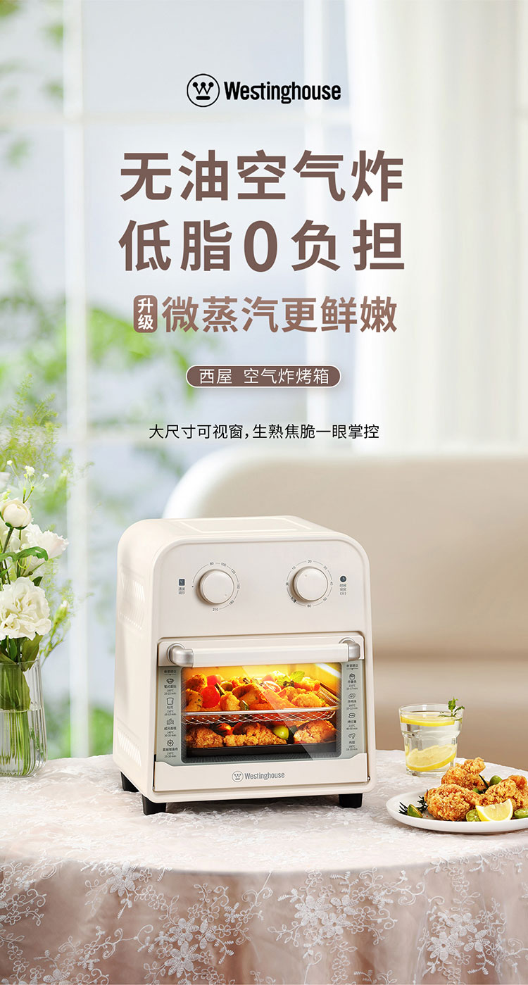 (世星阳光)+WY西屋 空气炸烤箱 21L WKX12A21 大尺寸可视窗 生熟焦脆一眼掌控 微蒸汽更鲜嫩