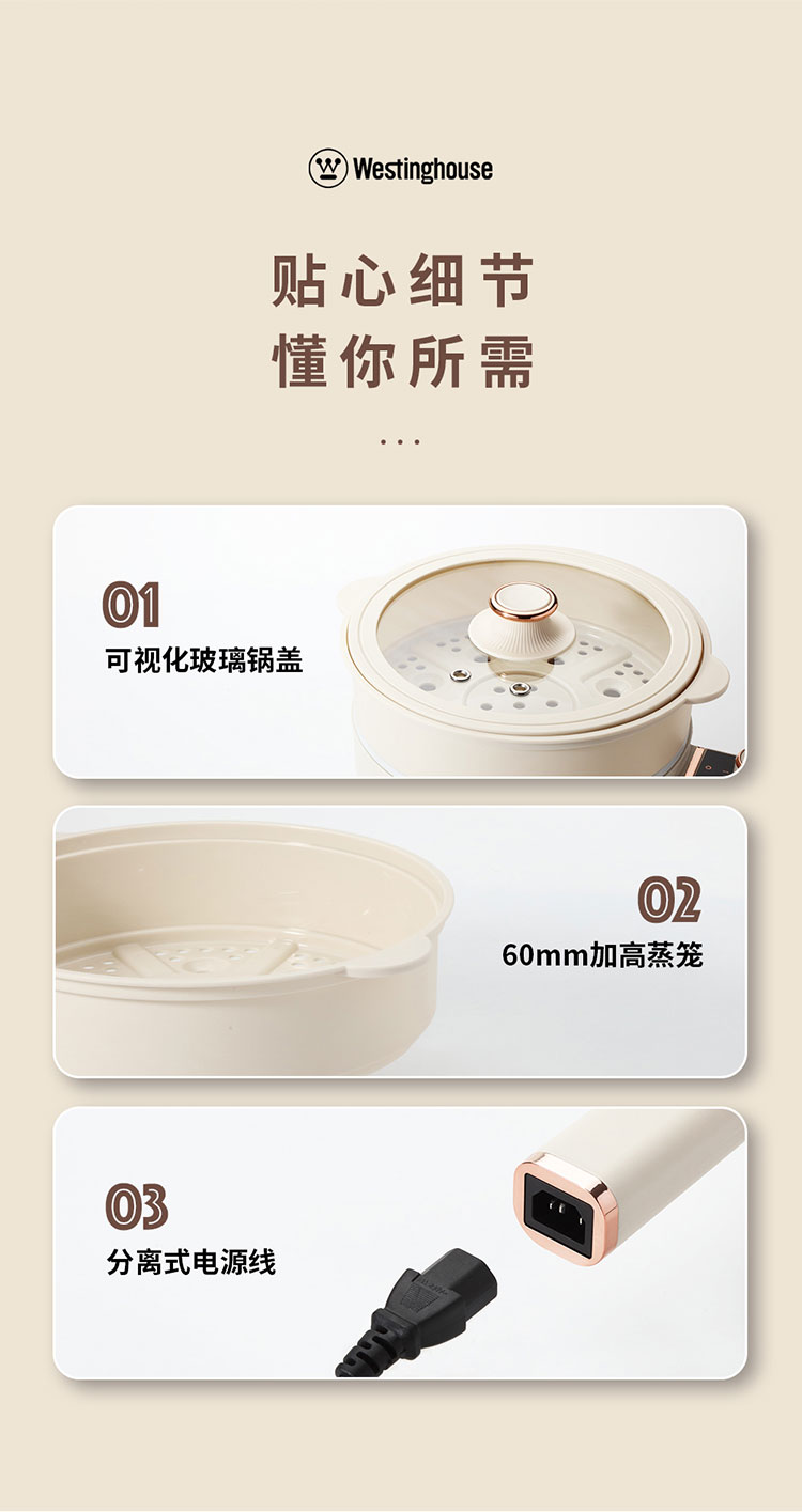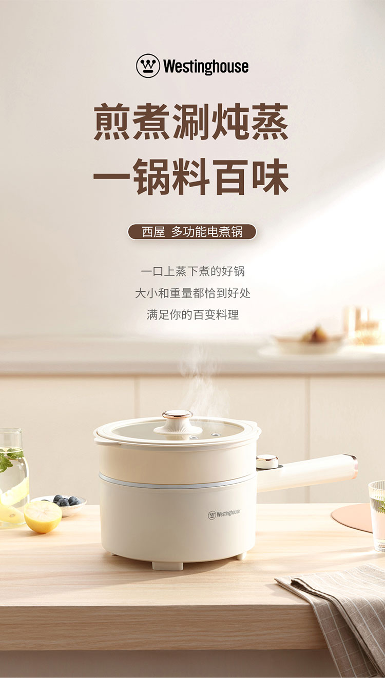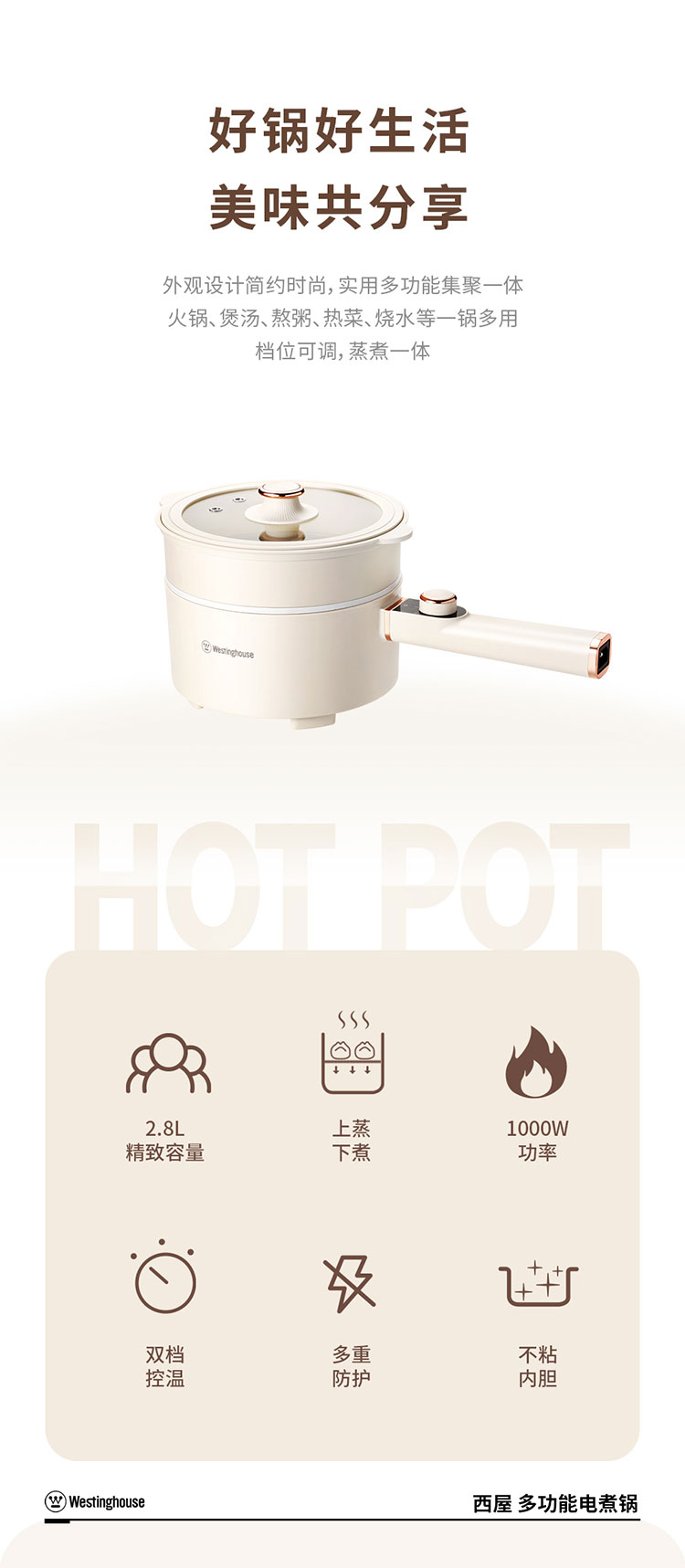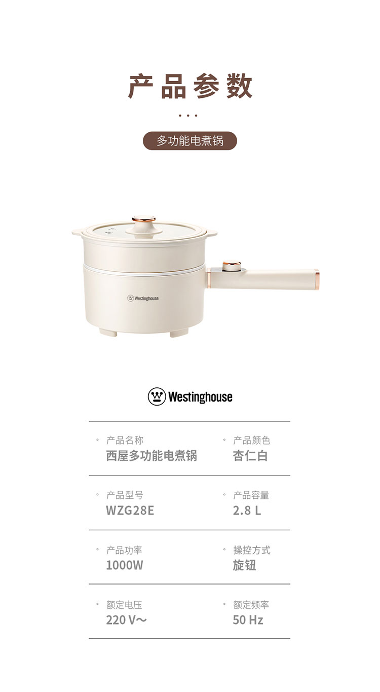 商品名称:(世星阳光)+WY西屋 多功能电煮锅 2.8L WZG28E 煎煮涮炖蒸一锅料百味